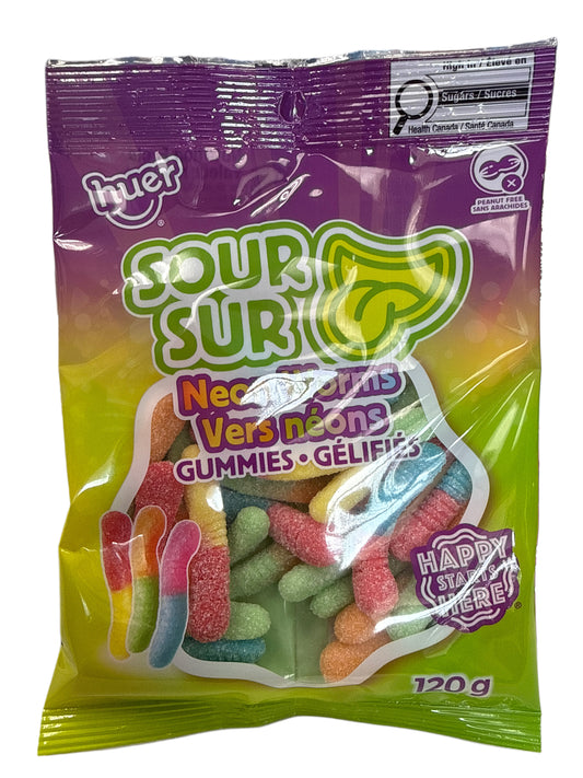 Huer Sour Neon Gummy Worms 120G - Canadian Edition
