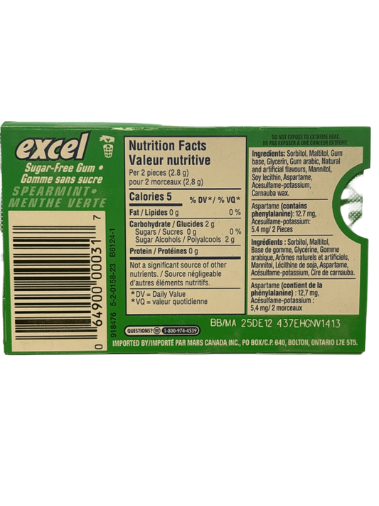 Excel Spearmint Gum 12 Pieces - Canadian Edition