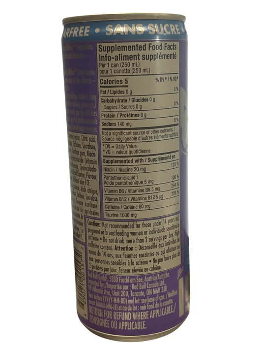 Red Bull Zero Sugar Grape Fruit & Blossom Energy Drink 250ML - Canadian Edition