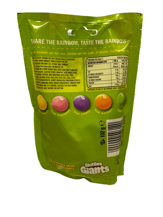 Skittles Crazy Sours Giants Candy Bag 132G - U.K Edition