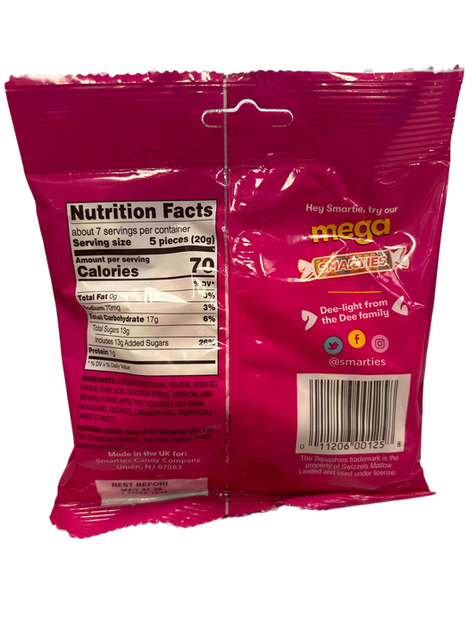 Squashies Smarties Raspberry And Cream Candy Bag 141G - U.S Edition