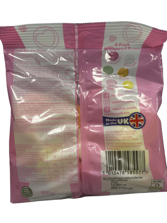 Squashies Love Hearts Mixed Fruit 120G - U.K Edition