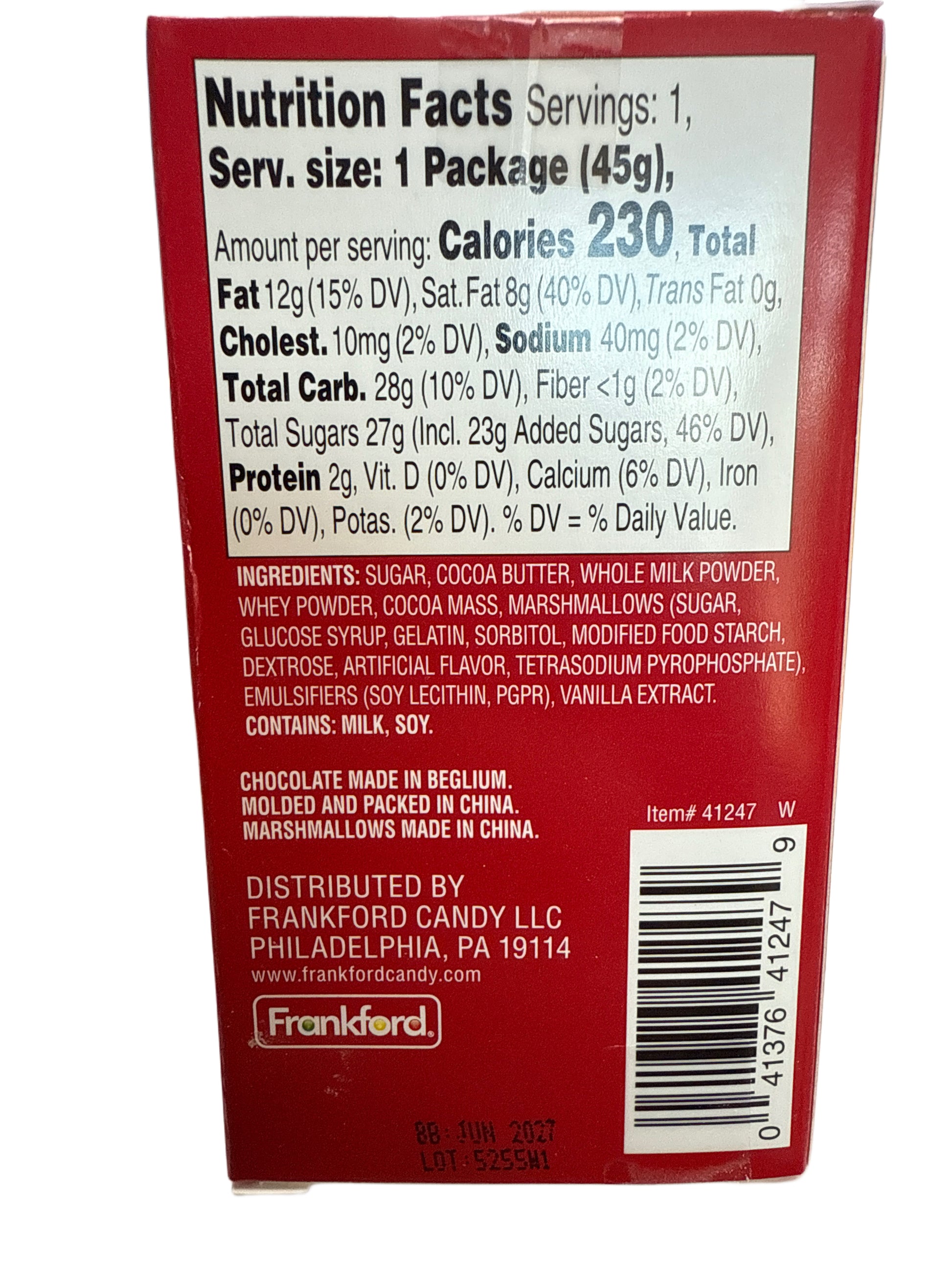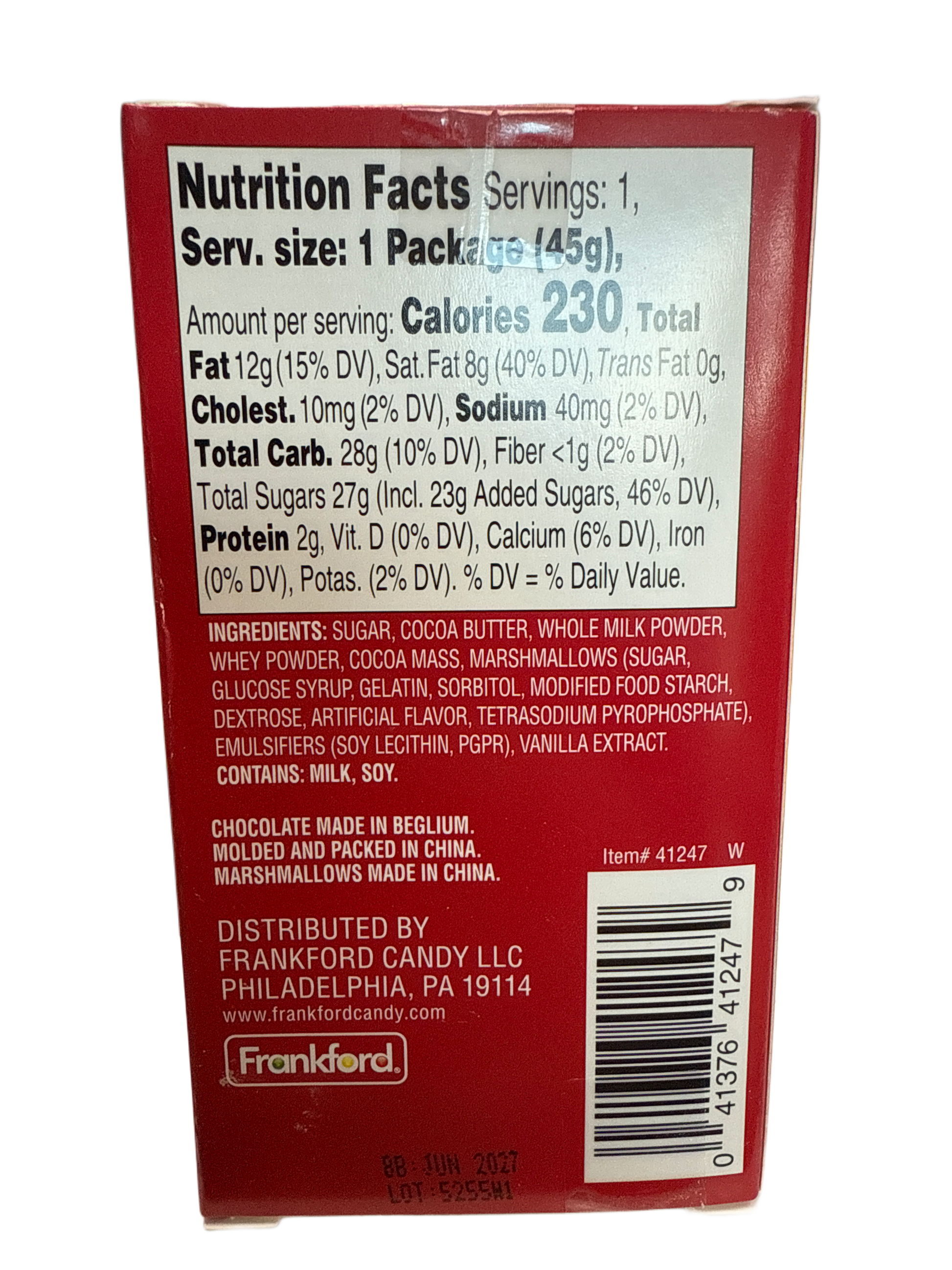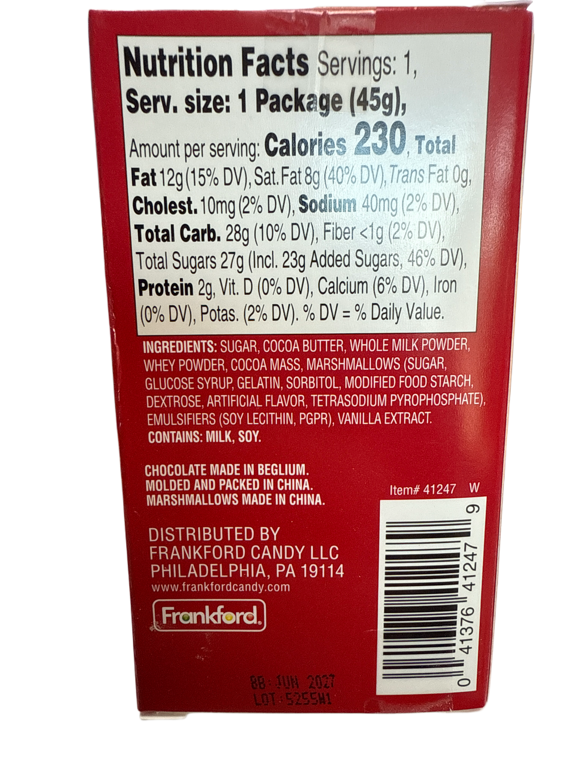 Wärmen Sie Ihre Weihnachtszeit mit der Frankford Christmas Polar Bear Belgian Hot Chocolate Bomb 45G – US Edition auf, einer limitierten festlichen Leckerei, die Premium-Schokolade und Spaß in jede Tasse bringt. Hergestellt aus reichhaltiger belgischer Schokolade und gefüllt mit klebrigen Mini-Marshmallows verwandelt diese heiße Schokoladenbombe eine einfache Tasse Milch in ein luxuriöses und interaktives Kakaoerlebnis.