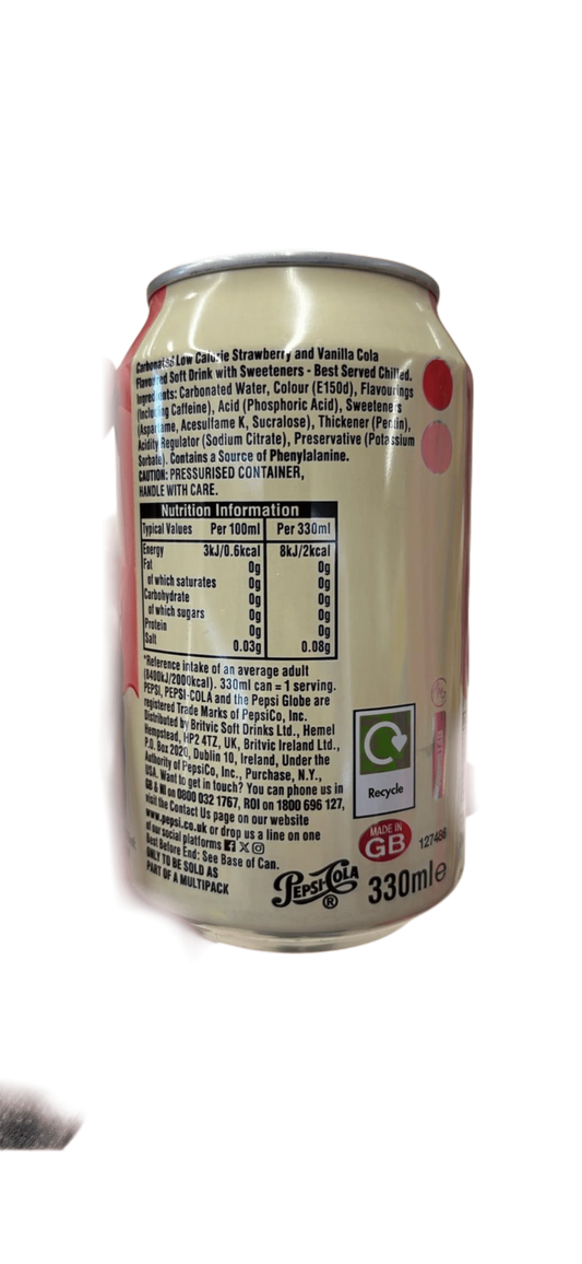 Pepsi Zero Sugar Strawberries N' Cream Can 330ML - U.K Edition