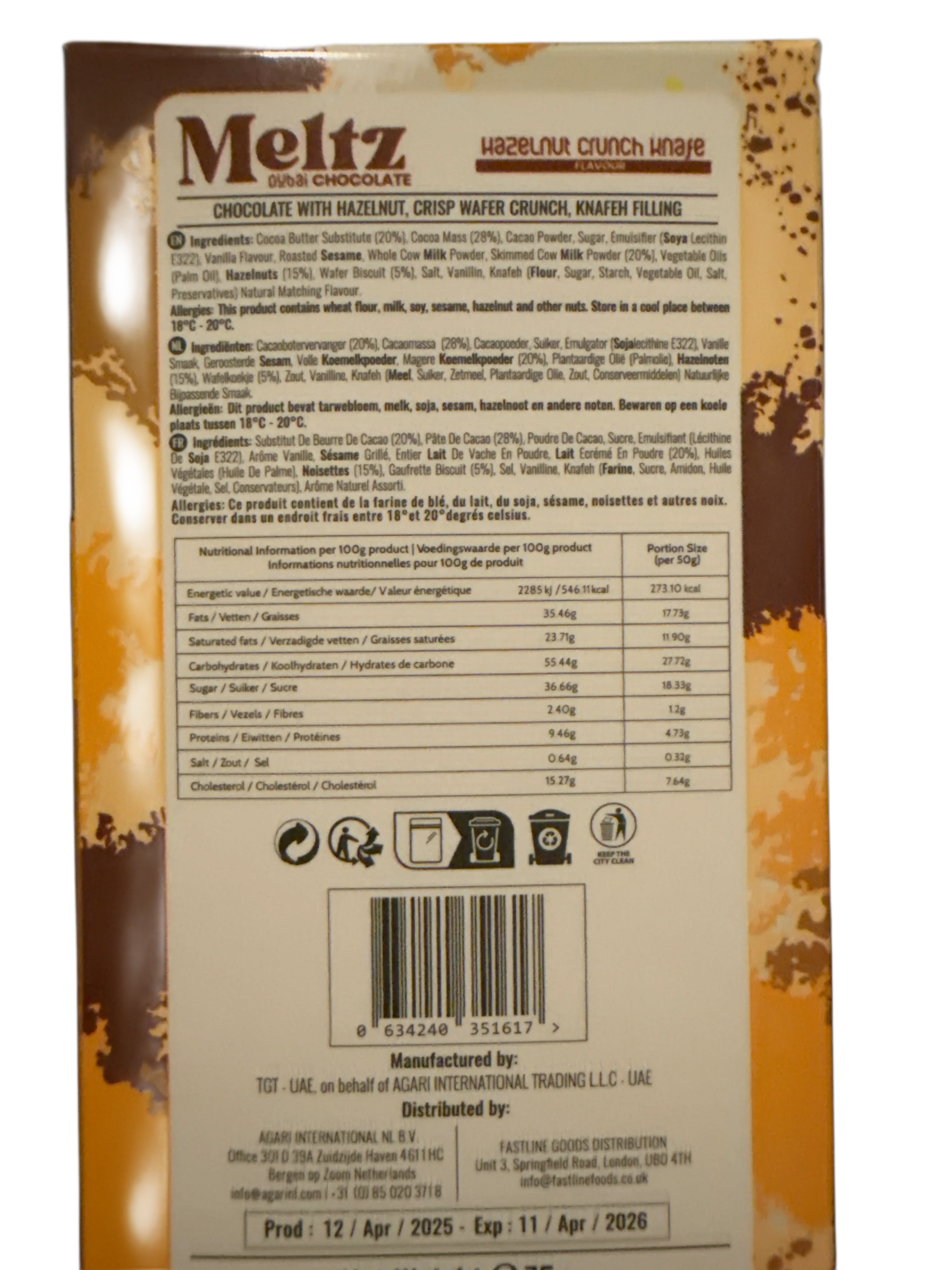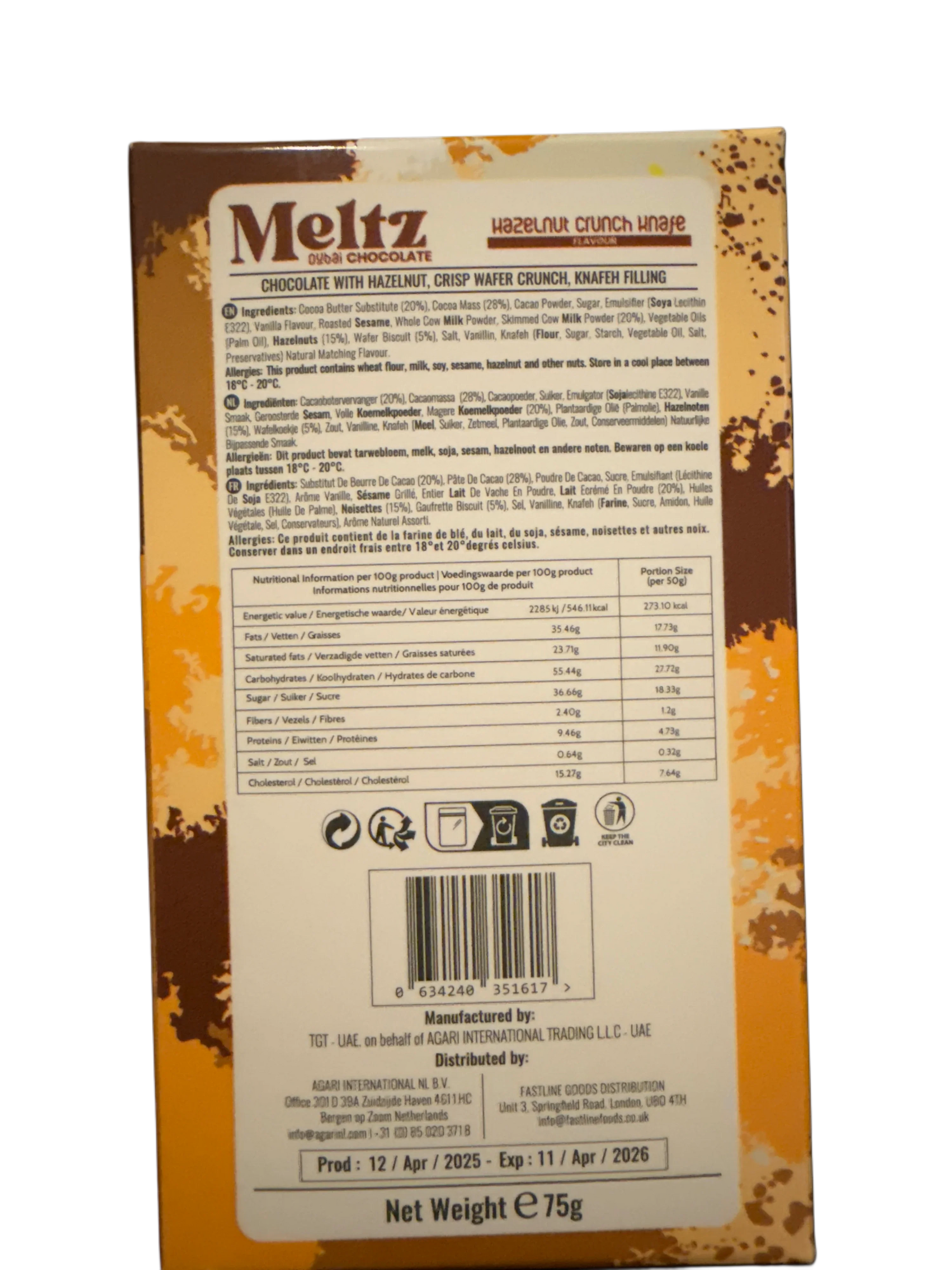 Meltz Dubai Chocolate Hazelnut Crunch Knafeh Flavour 75G - Dubai Edition