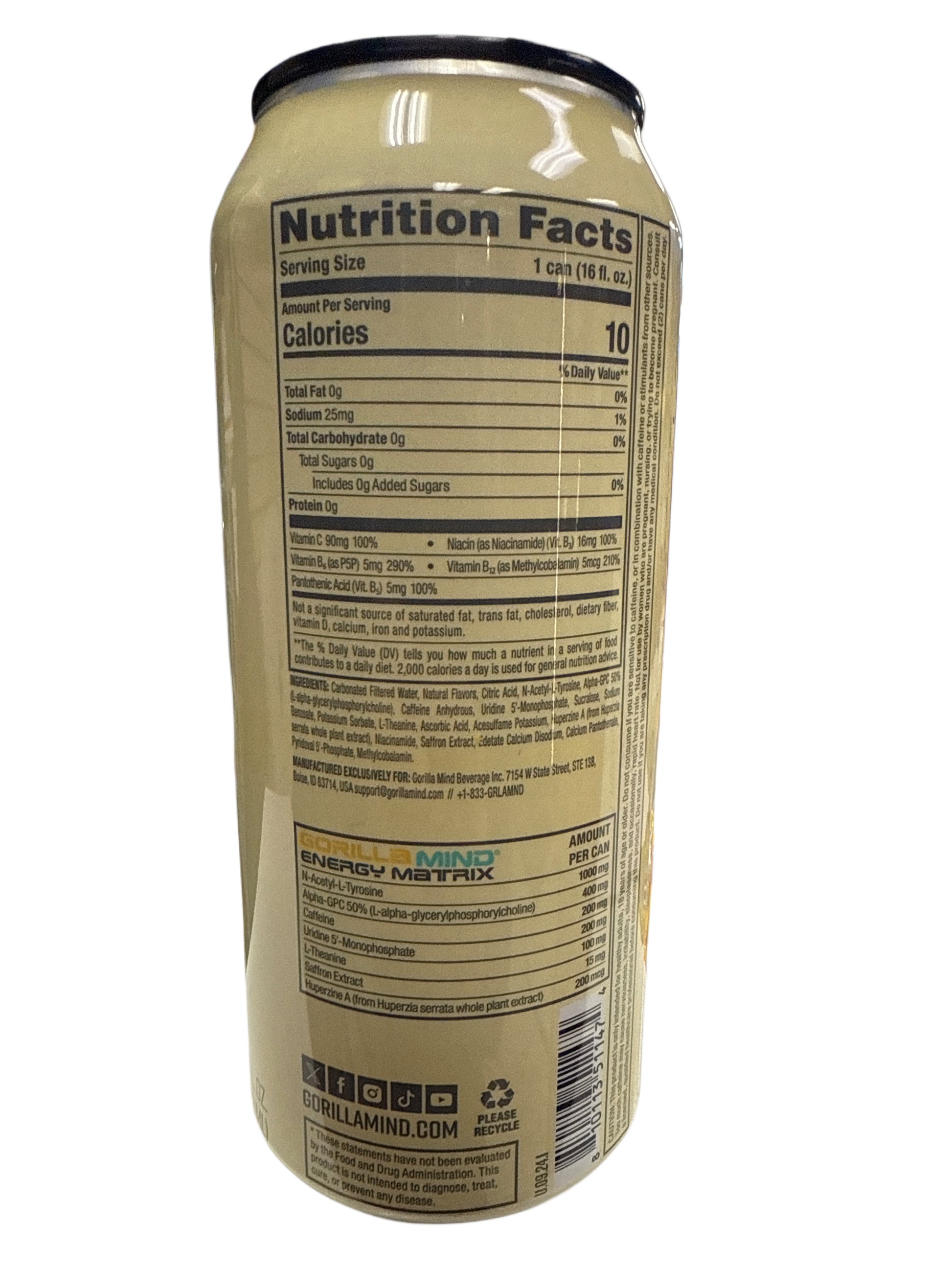 Ya sea que busques rendimiento, sabor o ambos, esta lata de 473ML ofrece energía de élite en un envase audaz y digno de coleccionista. Una vez que pruebes Gorilla Mind, será difícil volver a las bebidas energéticas ordinarias.