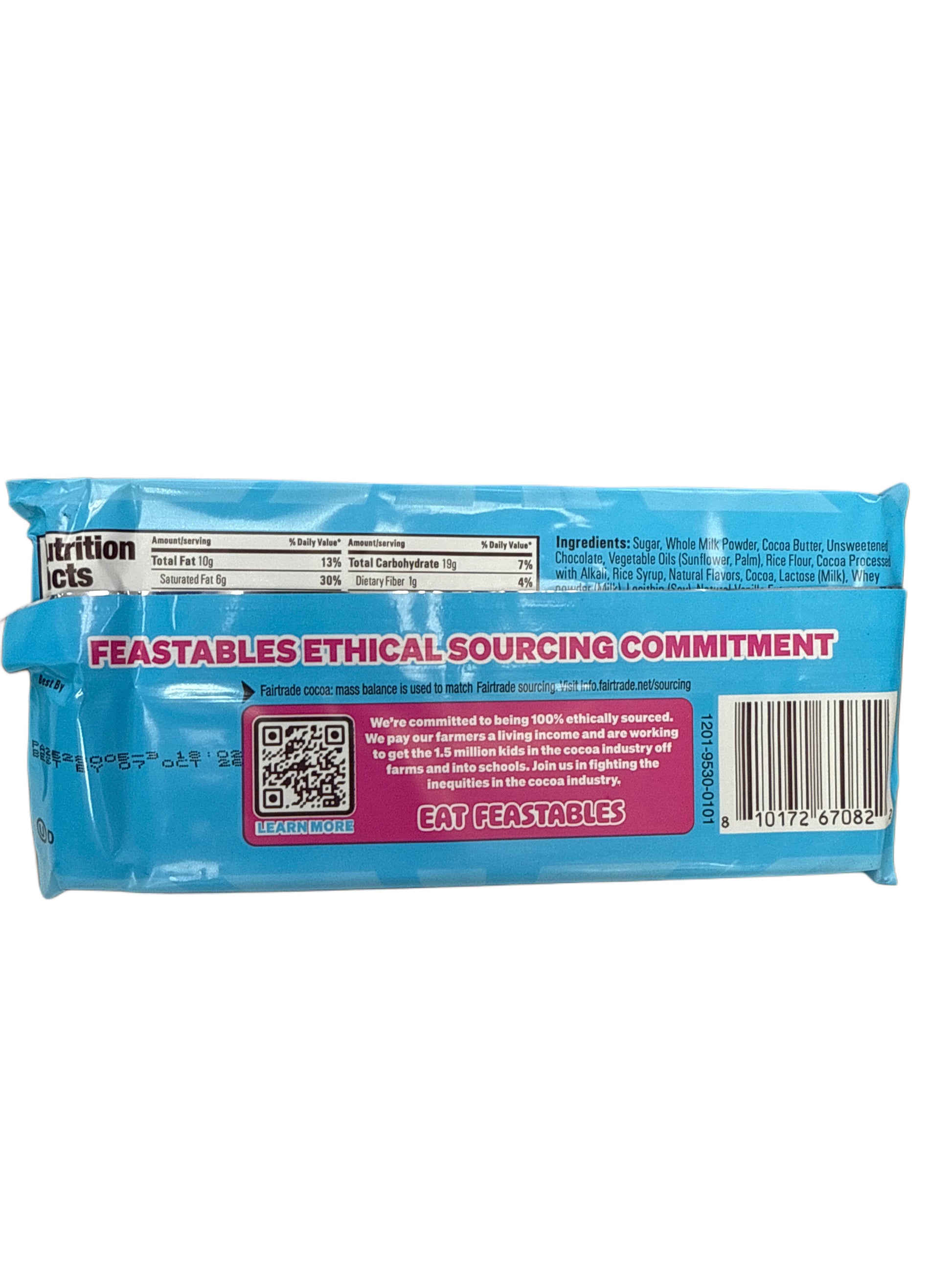 Cette barre surdimensionnée XL 95G présente un chocolat au lait onctueux infusé de mini éclats croquants de cacao qui évoquent l'ambiance chaleureuse du chocolat chaud avec des guimauves. Le résultat ? Une saveur nostalgique, hivernale, et totalement unique dans la gamme Feastables. Parce qu'il s'agit d'une édition limitée U.S, la disponibilité est extrêmement restreinte — c'est pourquoi les collectionneurs, revendeurs et aventuriers du snack se précipitent dès son apparition.