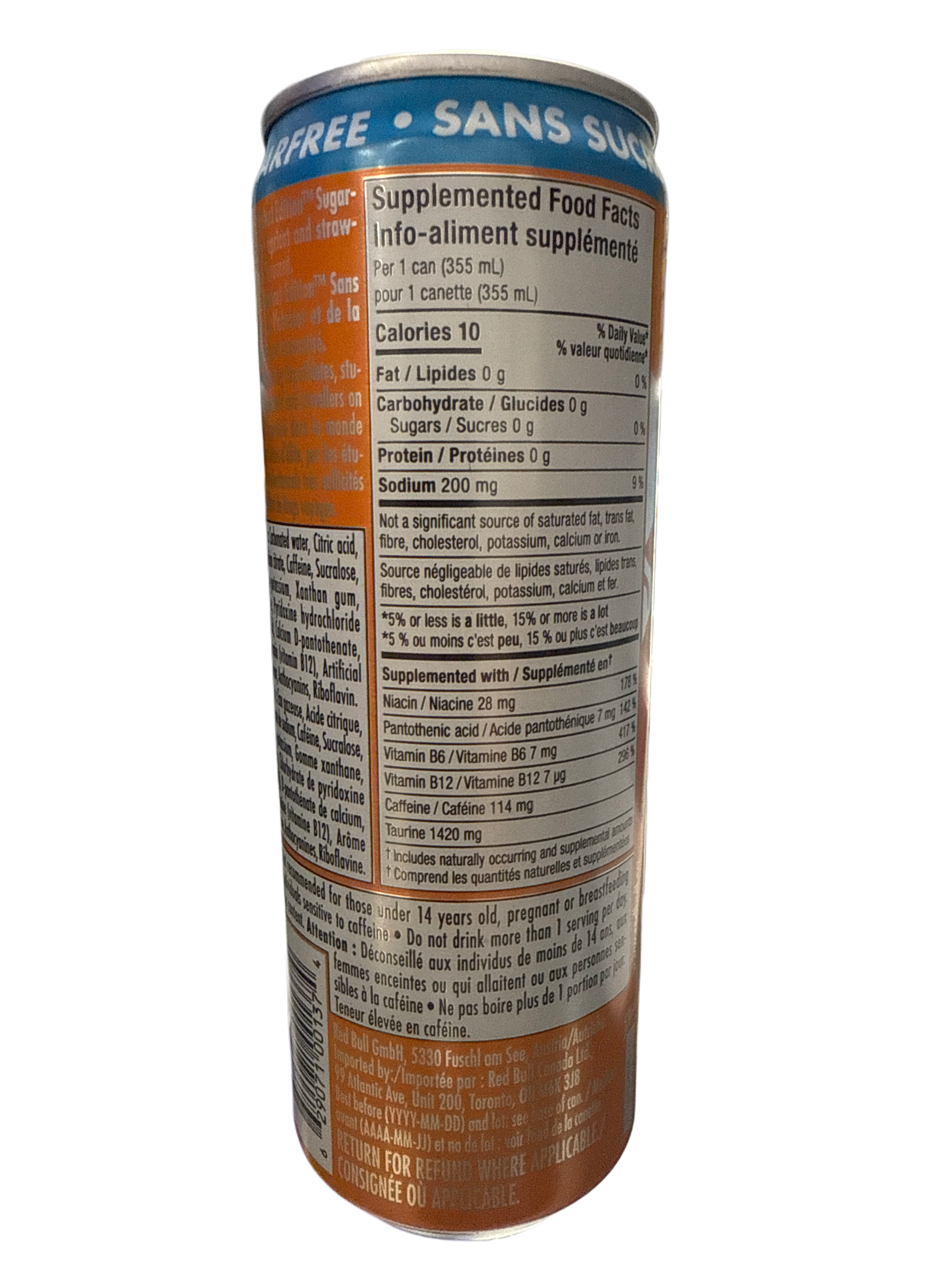 Red Bull Sans Sucre Saveur Abricot Fraise 355ML - Canadian Edition
