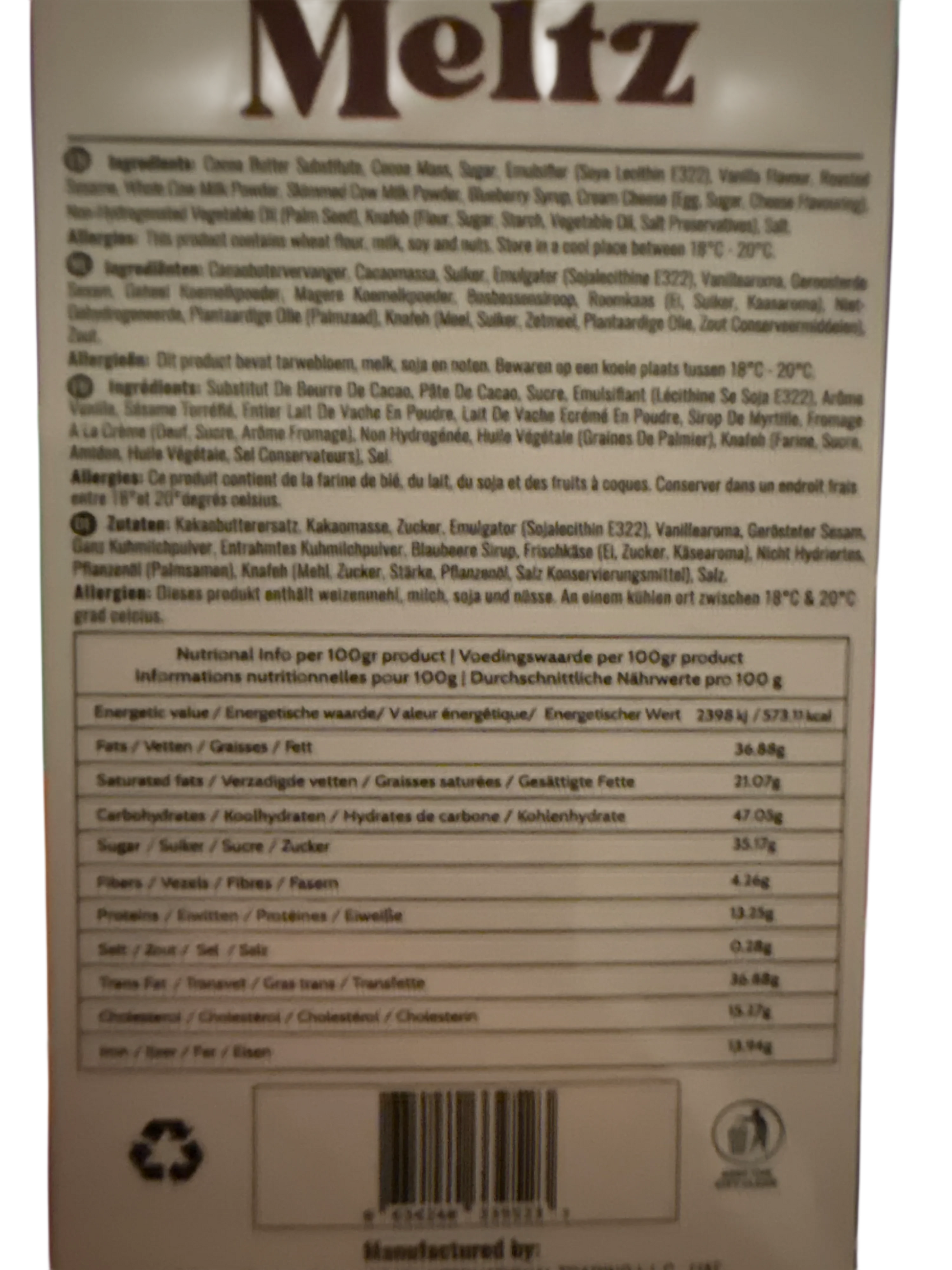 Meltz Dubai Chocolate Blueberry Cheesecake Knafeh Flavour 75G - Dubai Edition