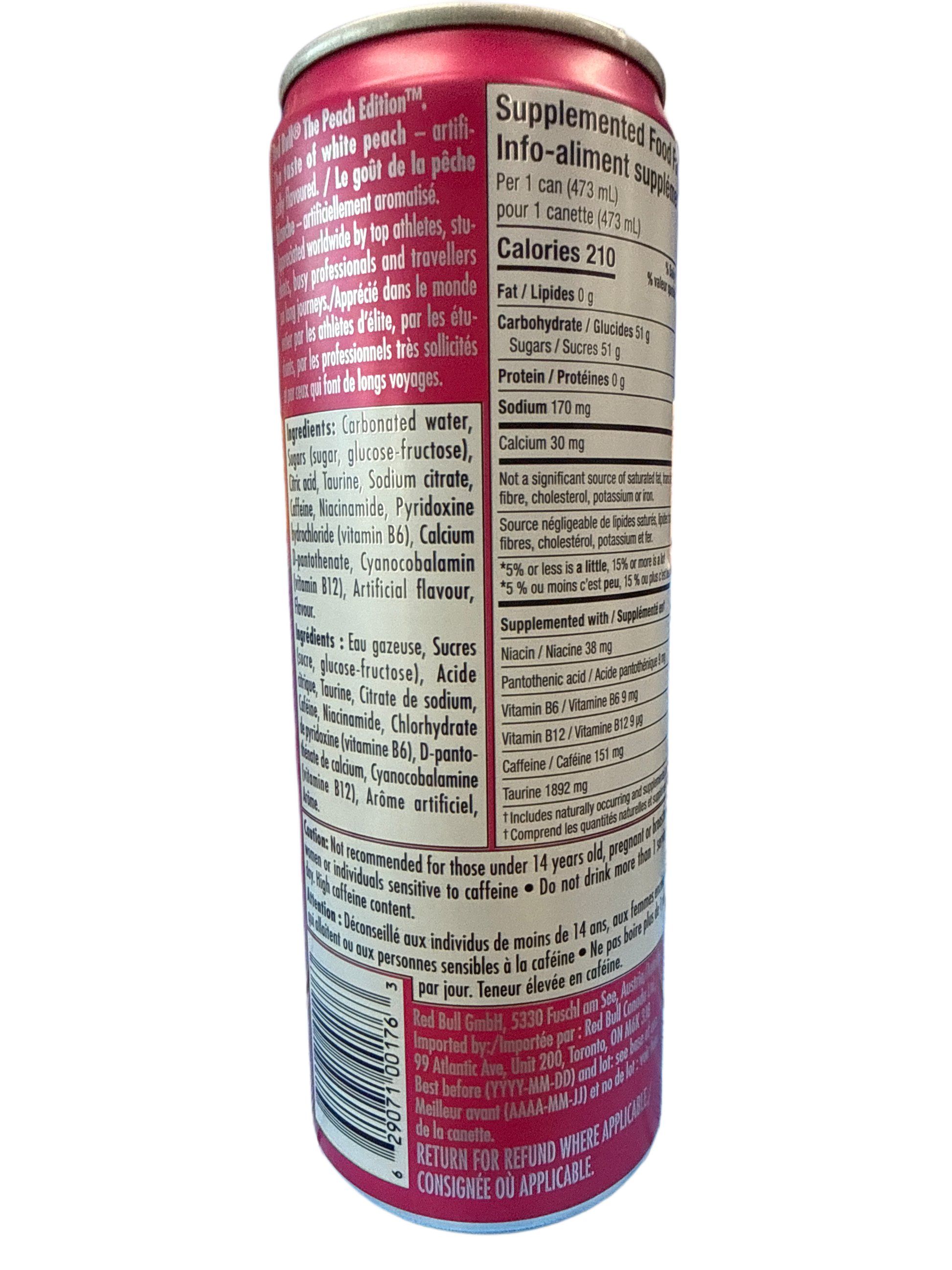 Red Bull White Peach Energy Drink 473ML - Canadian Edition