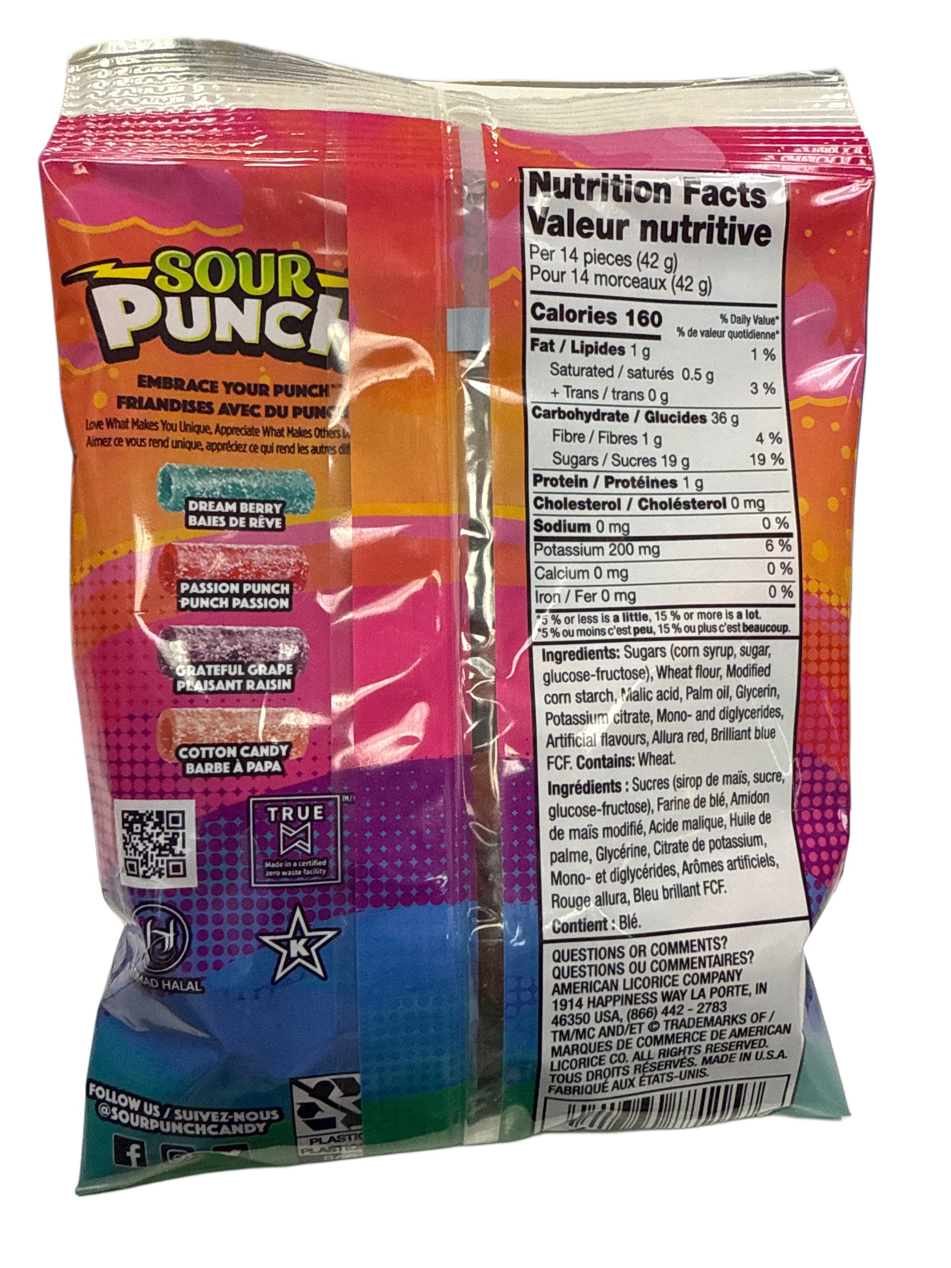 Imported straight from the U.S., these rare, exotic gummies are part of Sour Punch’s bold flavor lineup and are tough to find in Canada. Each bite delivers a mix of juicy flavors like Dream Berry, Passion Punch, Grateful Grape, and Cotton Candy — creating a perfectly balanced mix of sweet and tangy fun.