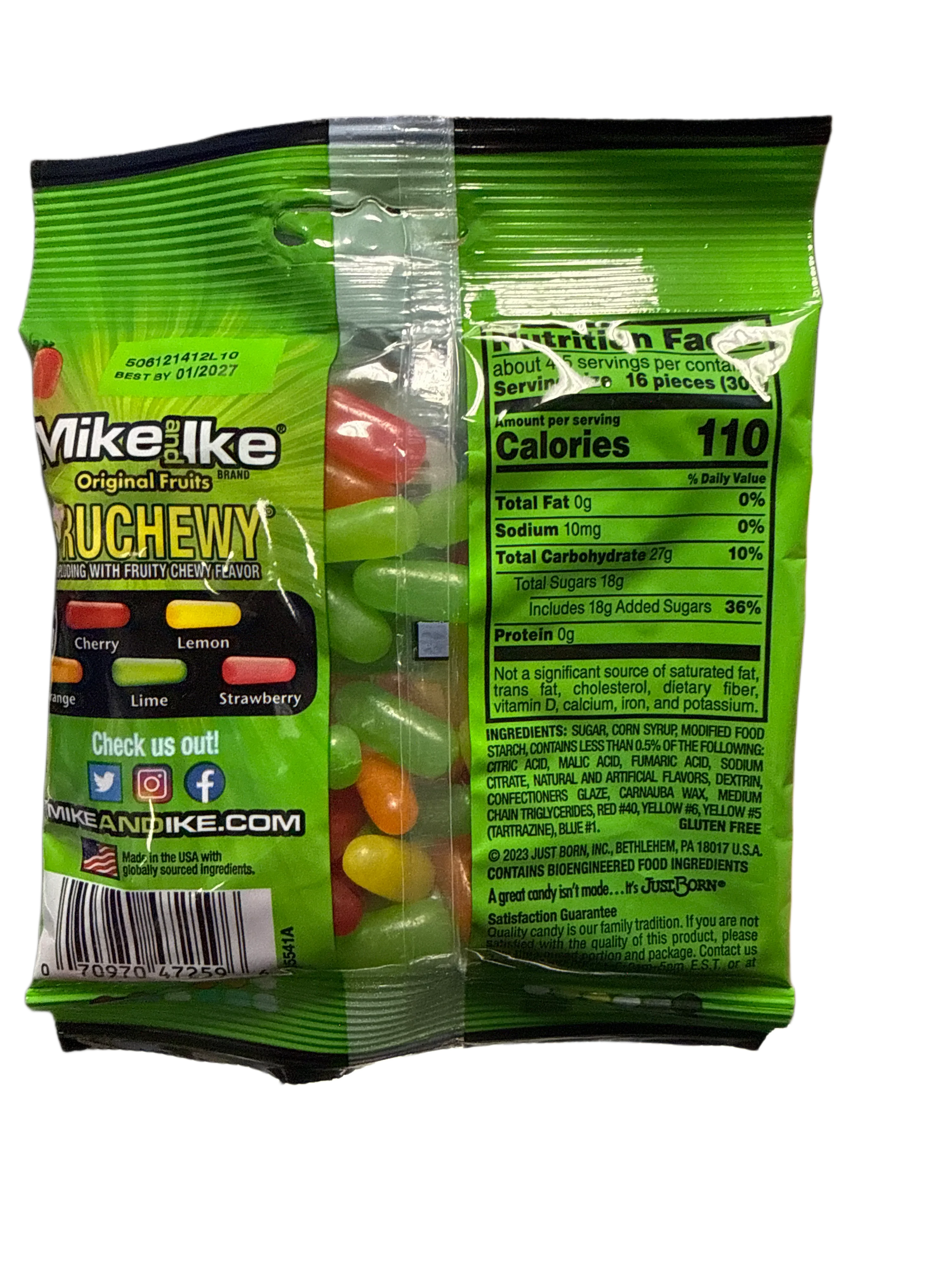 Original Fruits-blandningen innehåller de karaktäristiska Mike and Ike-smakerna som alla känner till och älskar — en livfull blandning av körsbär, citron, lime, apelsin och jordgubbsinspirerade toner. Varje bit ger en explosion av sötma med den där omisskännliga sega konsistensen som skiljer Mike and Ike från andra godissorter. Det är enkelt, färgstarkt och oändligt lätt att småäta.